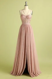 A Line Spaghetti Straps Tulle Prom Dress With Split