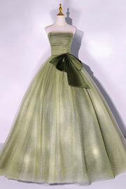 A-Line Strapless Floor Length Tulle Long Formal Dress Evening Party Dress With Bow/Ribbon