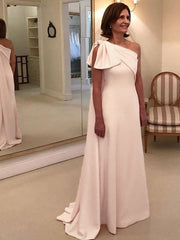 A-Line One-Shoulder Sleeveless Sweep/Brush Train Mother of the Bride Dresses Elegant Wedding Guest Party Dress with Bow