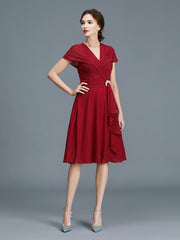 A-Line V-neck Chiffon Sleeveless Knee-Length Ruffles Mother of the Bride Dresses