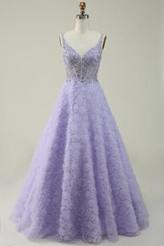 Charming A Line V Neck Long Prom Dress with Flowers Beautiful Elegant Evening Party Dress