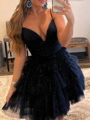 A-shaped princess sheer ruffle edge thin shoulder strap sleeveless short Homecoming Dress Sexy