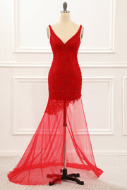 Asymmetrical Red Prom Dress With Embroidery V-neck Sexy Evening Dress