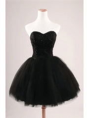 Ball Gown Cocktail Dresses Party Dress Graduation Knee Length Sleeveless Sweetheart Tulle with Pleats Beading - Black