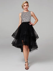 Ball Gown Cute Dress Homecoming Knee Length Sleeveless Jewel Neck Wednesday Addams Family Satin with Beading Cascading Ruffles - US 2 / UK 6 / EU 32