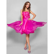 Ball Gown Open Back Dress Cocktail Party Knee Length Sleeveless Sweetheart Organza with Sash / Ribbon Bow(s) Ruched
