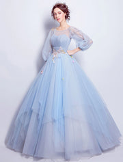 Ball Gown Prom Dresses Elegant Dress Quinceanera Engagement Floor Length 3/4 Length Sleeve Illusion Neck Tulle with Pleats Appliques