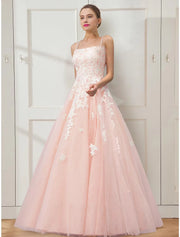 Ball Gown Prom Dresses Floral Dress Masquerade Floor Length Sleeveless Spaghetti Strap Tulle Crisscross Back with Embroidery - US 2 / UK 6 / EU 32