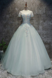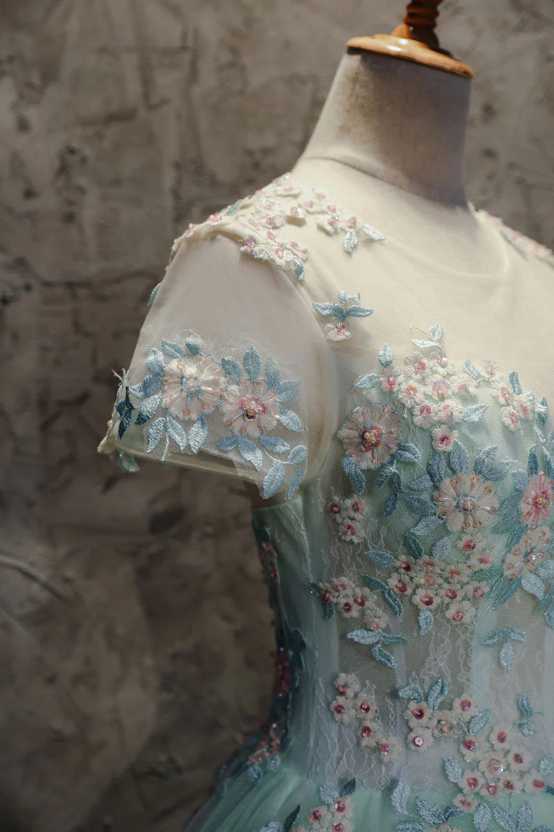 Ball Gown Prom Dresses Floral Dress Quinceanera Unique Light Green Tulle Lace Long Prom Dress Sweet 16 Dress - As picture