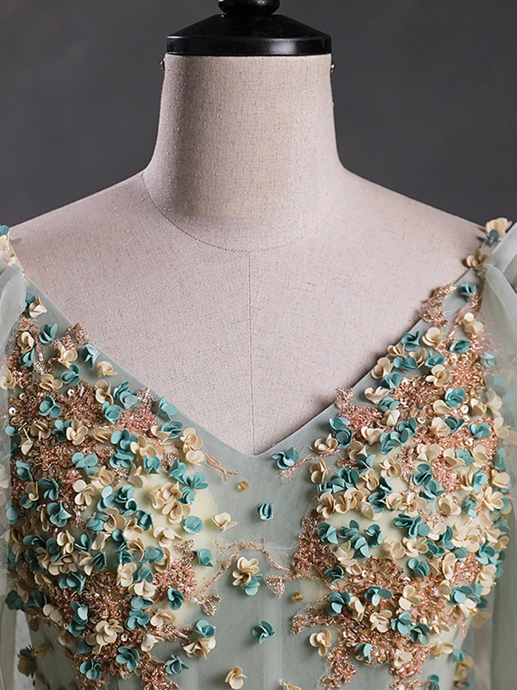 Ball Gown Quinceanera Dresses Princess Dress Green A-Line 3D Lace Long Prom Dress Green Lace Sweet 16 Dress - As picture