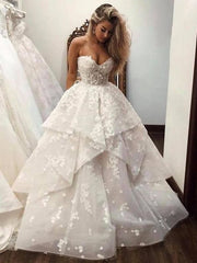 Ball Gown Sweetheart Organza Applique Sleeveless Court Train Wedding Dresses