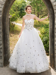 Ball Gown Wedding Dresses Sweetheart Neckline Floor Length Lace Tulle Sleeveless with Lace Appliques Flower