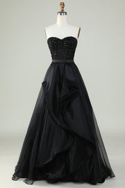 Black Strapless Ball Gown Evening Dress