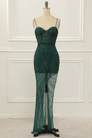 Dark Green Sequin Sparkly Prom Dress With Slit Sexy Evening Dress