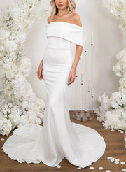 Elegant Trumpet Mermaid Off-The-Shoulder Elastic Satin Wedding Dresses Simple