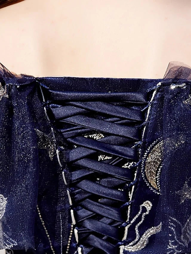 Fairy Prom Dress Sparkle Party Dress Off Shoulder Short Sleeve Floor Length Tulle with Sequins Embroidery