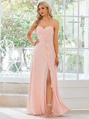 Front Slit Sweetheart Crossed Back Tie Chiffon Bridesmaid Dress