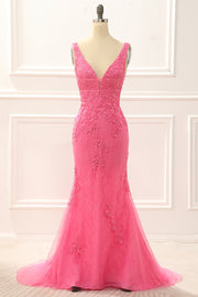 Hot Pink Tulle Mermaid Prom Dress With Appliques
