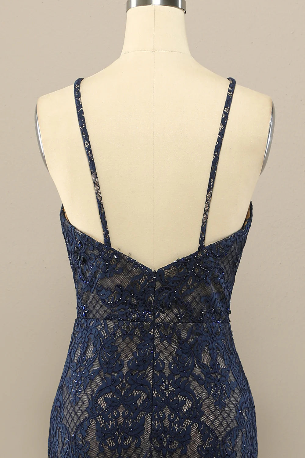 Mermaid Spaghetti Straps Lace Long Prom Dress With Split