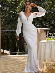 Mermaid / Trumpet Elegent Evening Gown Sexy Dress Formal Floor Length Long Sleeve V Neck Polyester with Sequin