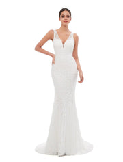Mermaid / Trumpet Evening Gown Celebrity Style Dress Engagement Court Train Sleeveless V Neck Sequined with Sequin Embroidery