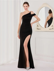 Mermaid / Trumpet Evening Gown Elegant Dress Wedding Guest Floor Length Sleeveless Spaghetti Strap Satin V Back with SlitMermaid / Trumpet Evening Gown Elegant Dress Wedding Guest Floor Length Sleeveless Spaghetti Strap Satin V Back with Slit