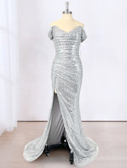 Mermaid / Trumpet Evening Gown Sparkle & Shine Dress Cocktail Party Floor Length Short Sleeve Off Shoulder Sequined with Ruched