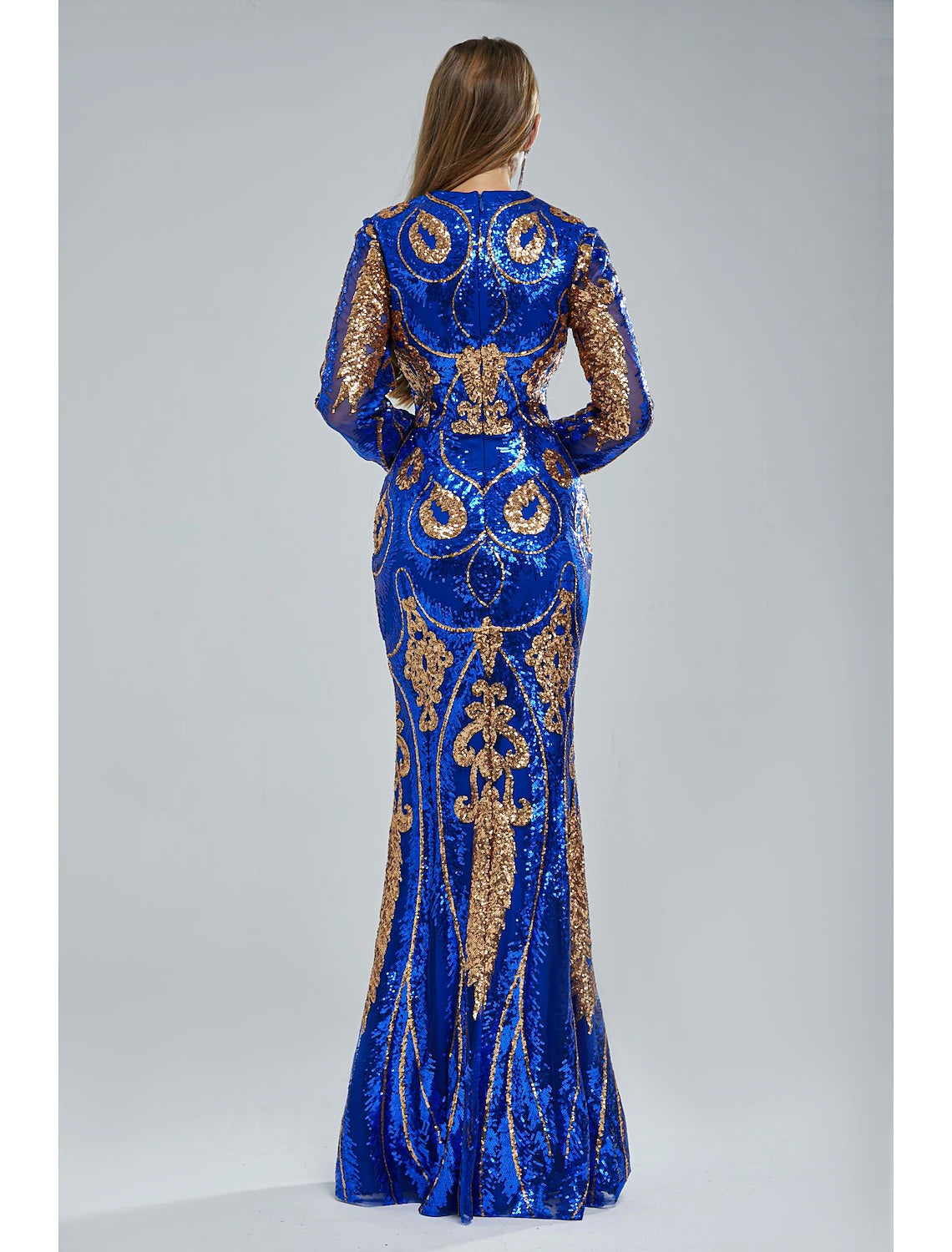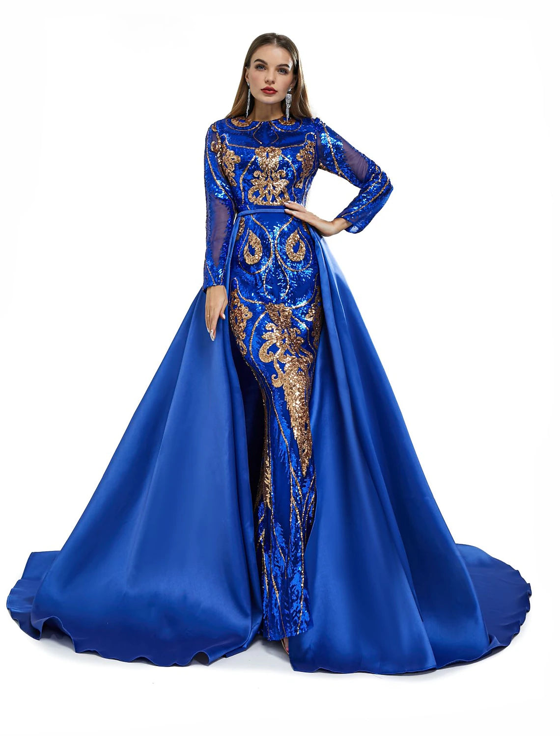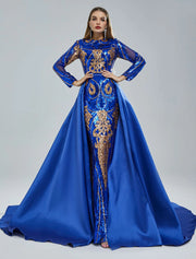 Mermaid / Trumpet Evening Gown Sparkle & Shine Dress Engagement Formal Evening Chapel Train Short Sleeve Jewel Neck Sequined with Sequin - Royal Blue