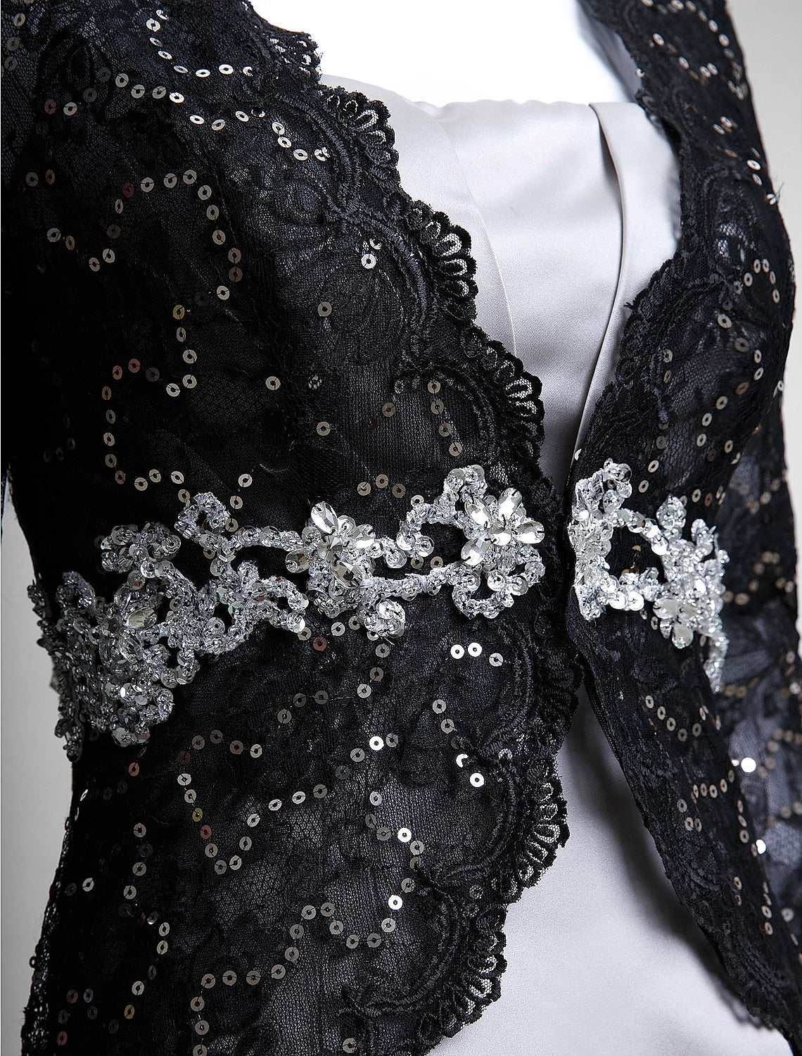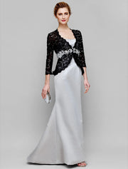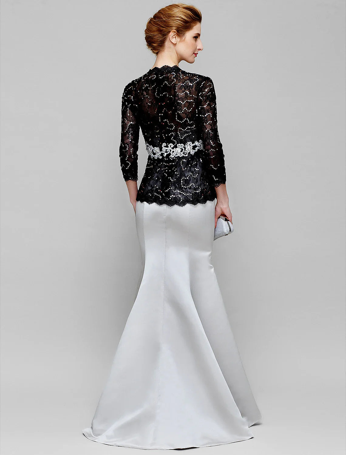 Mermaid / Trumpet Mother of the Bride Dress Convertible Dress Strapless Floor Length Satin Lace 3/4 Length Sleeve No with Lace Beading Sequin - US 2 / UK 6 / EU 32