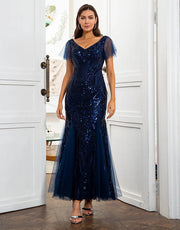 Navy blue sequin fish tail mother of the bride dress Sparkly Evening Dress