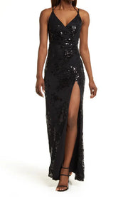 Noble slim shoulder strap off shoulder sequin pleated lace front slit prom dress Evening Dress - US 2 / UK 6 / EU 32