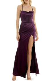 Noble thin shoulder strap open shoulder side slit satin open back strap evening dress Sexy - US 2 / UK 6 / EU 32