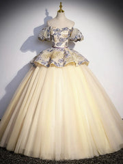 Quinceanera Dresses Princess Dress  Off the Shoulder Champagne Floral Tulle Long Formal Dress