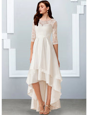 Reception Little White Dresses Wedding Dresses A-Line Illusion Neck Half Sleeve Asymmetrical Chiffon Bridal Gowns With Cascading Ruffles