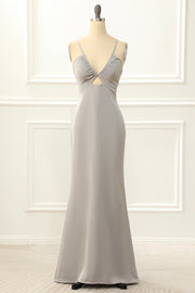 Satin V-Neck Sheath Simple Prom Dress Sexy Bridesmaid Dress Party Dress