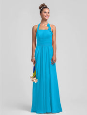 Sheath / Column Bridesmaid Dress Halter Neck Sleeveless Floor Length Chiffon with Pleats / Ruched / Ruffles - Show As picture