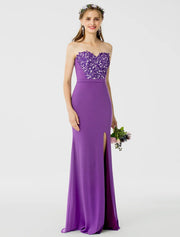 Sheath / Column Bridesmaid Dress Sweetheart Sleeveless Open Back Floor Length Jersey / Floral Lace with Sash / Appliques / Split Front - Show As picture