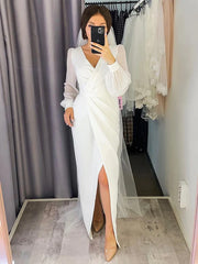 Sheath/Column Chiffon Ruched V-neck Long Sleeves Floor-Length Wedding Dresses