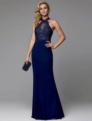 Sheath / Column Evening Gown Cut Out Dress Wedding Guest Floor Length Sleeveless Halter Neck Spandex Crisscross Back with Appliques Elegant - US 2 / UK 6 / EU 32