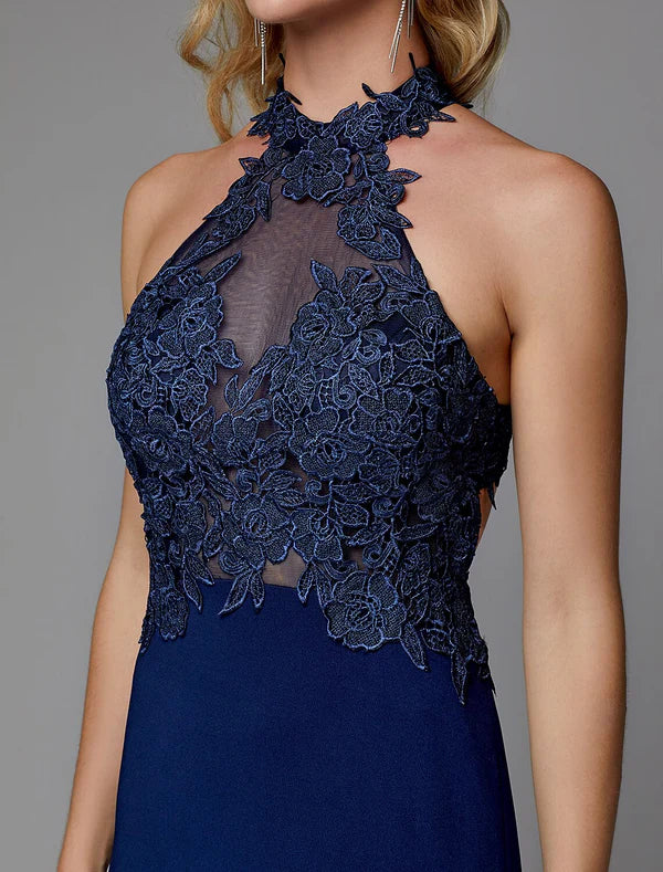 Sheath / Column Evening Gown Cut Out Dress Wedding Guest Floor Length Sleeveless Halter Neck Spandex Crisscross Back with Appliques Elegant