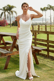 Sheath/Column Jersey Ruched V-neck Sleeveless Sweep/Brush Train Wedding Dresses