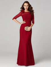 Sheath / Column Keyhole Dress Holiday Floor Length 3/4 Length Sleeve Bateau Neck Charmeuse with Ruched Flower Solid Color - Burgundy