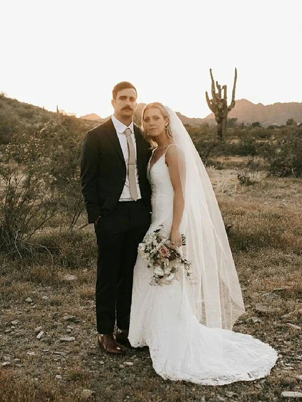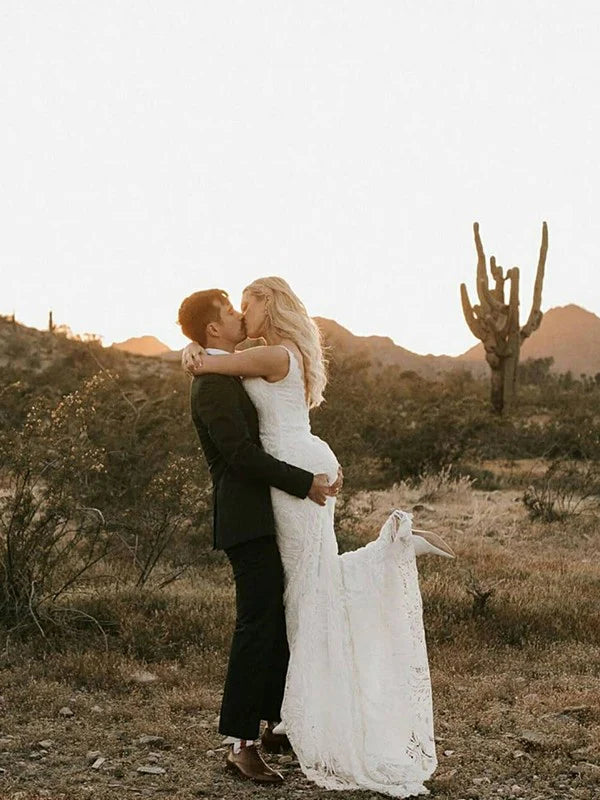 Sheath/Column Lace Applique Spaghetti Straps Sleeveless Sweep/Brush Train Wedding Dresses Beautiful - As picture / US 2 / UK 6 / EU 32