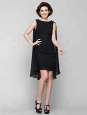 Sheath / Column Mother of the Bride Dress Wrap Included Bateau Neck Knee Length Chiffon Sleeveless yes with Crystals - US 2 / UK 6 / EU 32