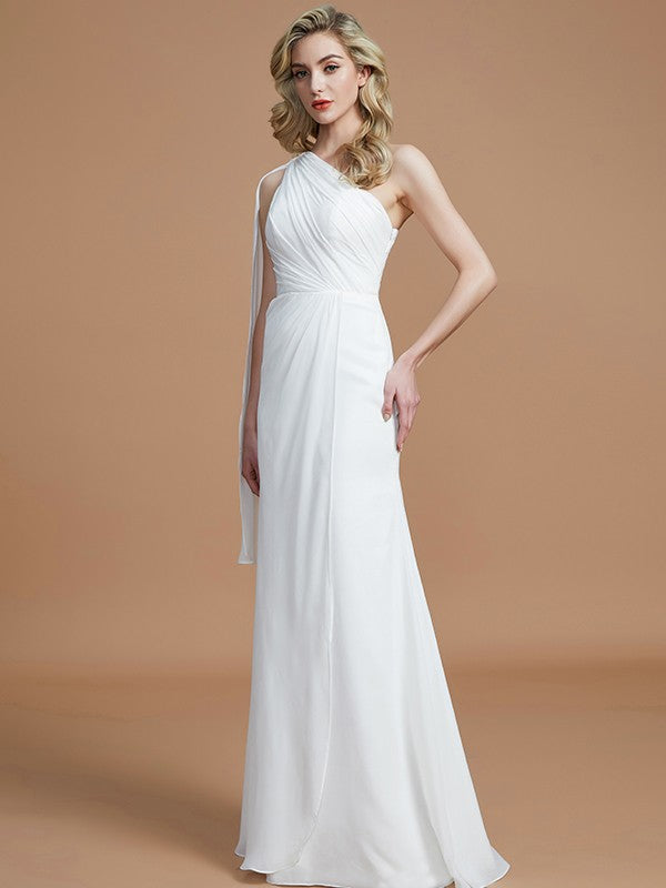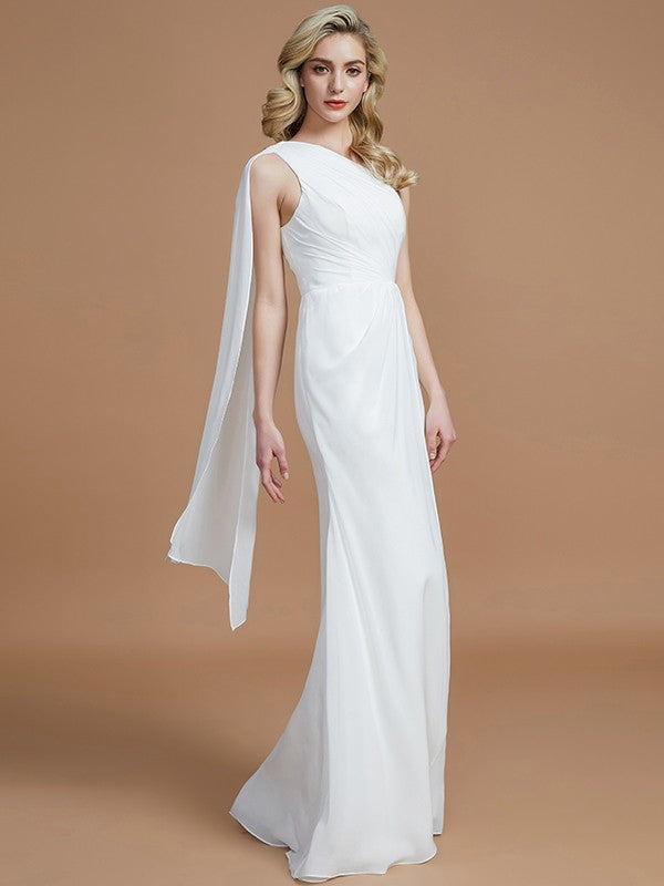Sheath/Column One-Shoulder Sleeveless Floor-Length Chiffon Bridesmaid Dresses