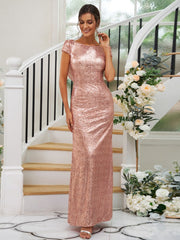 Sheath/Column Sequins Ruched Scoop Short Sleeves Floor-Length Bridesmaid Dresses - As_picture