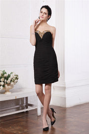 Sheath/Column Sweetheart Sleeveless Beading Pleats Short Chiffon Cocktail Dresses - US 2 / UK 6 / EU 32