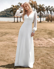 Sheath Lace Boho Simple Long Sleeves Wedding Dress