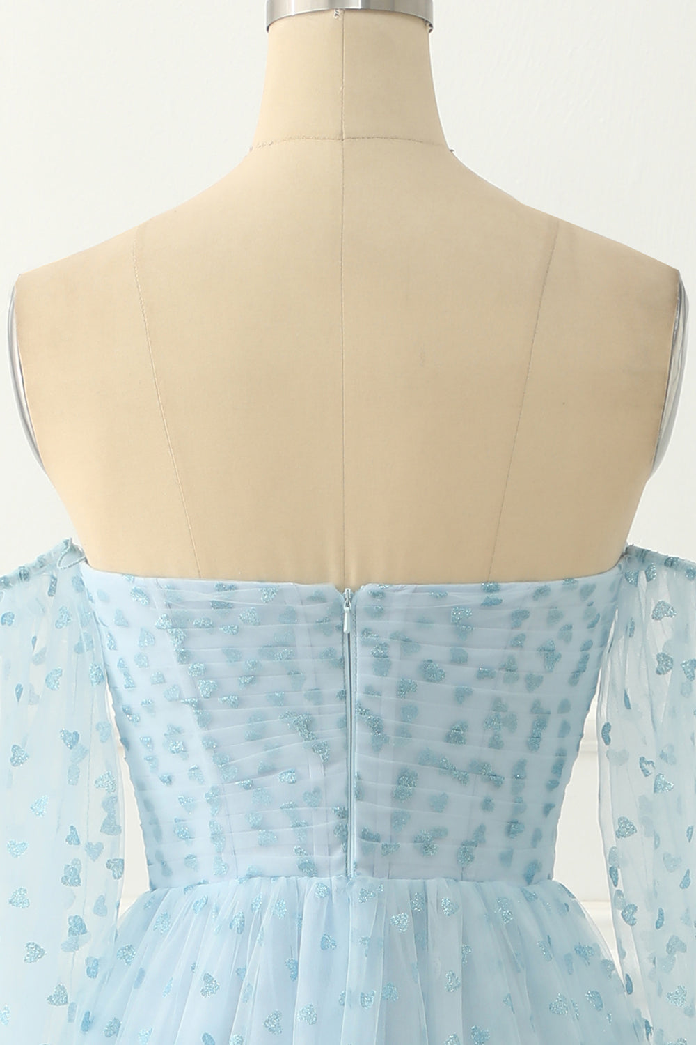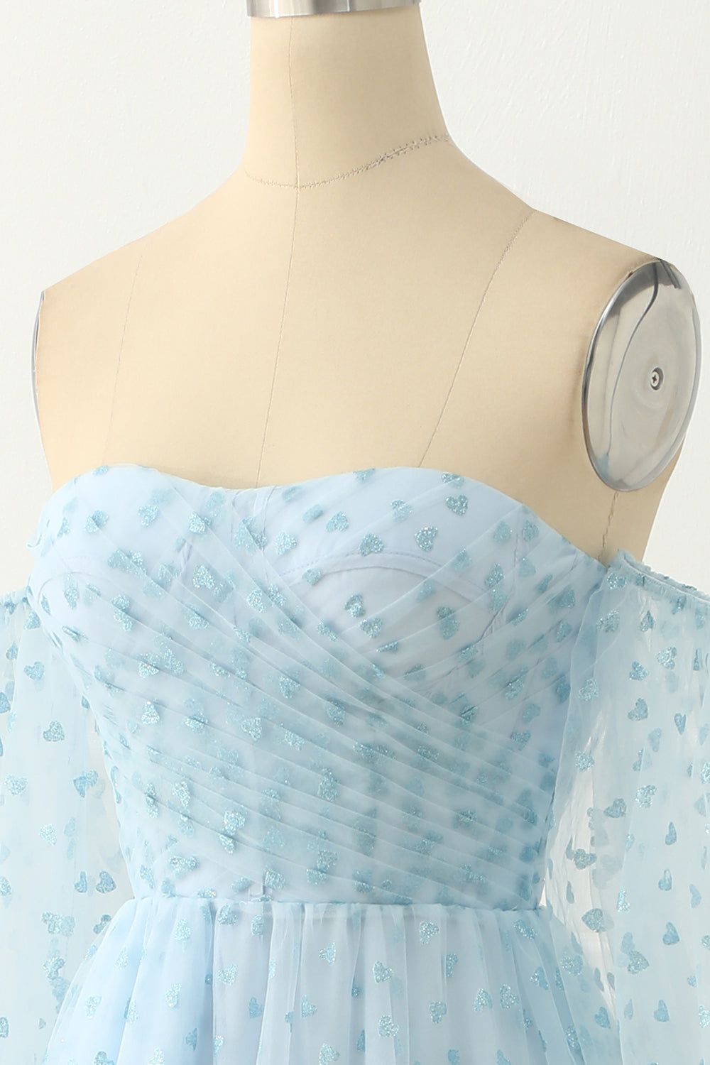 Sky Blue Tulle Off The Shoulder Long Prom Dress