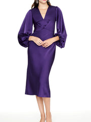 Slim fit/cylindrical V-neck tea length mother of the bride dresses Solid Color - US 2 / UK 6 / EU 32